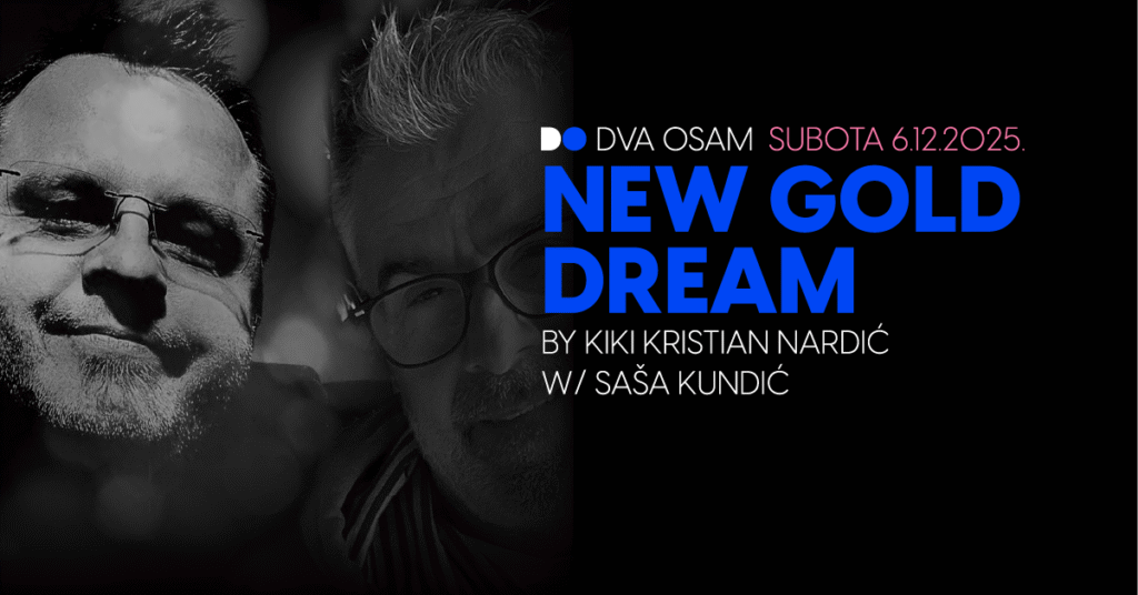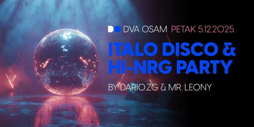 Italo Disco & Hi-NRG party u klubu DVA OSAM, znači da plešemo u stilu stare Disco mjuze, koju puštaju dario.zg i Mr. Leony! Zaokružite crvenom bojom u vašim kalendarima petak 5. 12. i vidimo se na plesnom podiju! New Gold Dream by Kristian Nardić Kiki, domaćinu Kikiju će se u DJ kabini pridružiti Saša Kundić, koji je jedan od glazbenih urednika legendarne glazbene redakcije 101-ce i sestrinskog Radija 1 te jedan od rezident DJ-a brojnih programa Lapidarija i Kulušića, nekada kultnih zagrebačkih klubova, dobar poznavatelj zvuka koji njeguje program New Gold Dream. Domaćin večeri Kiki | Kristian Nardić (Radio 101, KSET, Gjuro, Jabuka, SKUC/Pauk, Press, Lapidarij, Kulušić, Aquarius, OTV/Boogaloo, Tvornica…) dobro je poznato ime zagrebačke klupske scene.