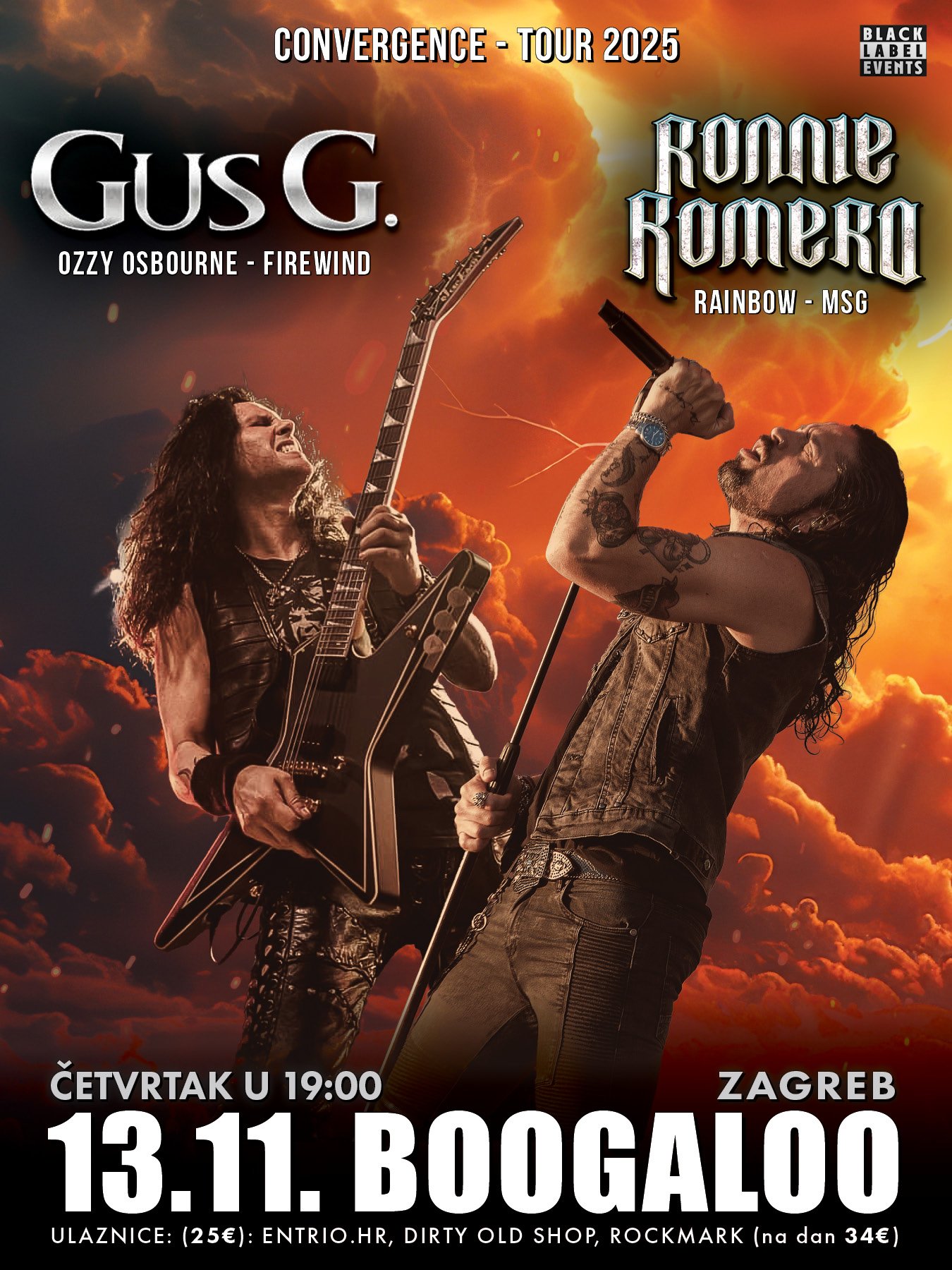 U četvrtak 13.11. 2025. će u zagrebački Boogaloo u organizaciji Black Label Events po prvi puta doći dva velikana heavy metal scene, pjevač Ronnie Remero(Rainbow, Elegant Weapons, MSG) i gitarist Gus G. (Ozzy Osbourne, Firewind) potpomgnuti sa Petrosom na bas gitari i Jo Nunezom na bubnjevima, obojica članovi grupe Gus G.-evog benda Firewind. Na programu će biti večer puna rock i metal himni koje će prodrmati Zagreb izvodeći poseban set koji spaja pjesme njihovih pjesma sa bezvremenskim klasicima bendova Dio, Rainbow, Black Sabbath i Ozzy Osbournea.