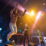 Sam ulaz u večer začinili TV EYE zagrebački garažni r’n’r band, koji eto, nisam imao prilike slušati do sada (sorry dečki na INMusicu ste bili prerano :). Dakle bend je odličan, predstava na najjače, što nije čudo jer pjevač, glumac, ajatolah rokenrola, Miran Kurspahić to tako dobro  dočarava. Ok, kupili ste me i sad dok pišem ovo slušam vaš prvijenac “Kick it out “ i bome imate sve da budete prenosioci r’n’r a na ovim prostorima i dalje. Ne smijem zatajiti podatak da je bubnjar, onaj bradati sa šiltericom koji se gura obično u fotopitu s nama, gospon bubnjar i odličan fotograf TV EYA, Igor “Šlapica” Cecelja. Ostatak benda su Saša “Ćuso” Mitrović na ritam gitari, Saša “Seksi Bumbar” Strakoš na lead gitari, Alan “Crni” Mance na basu i  Miran “Gejpardić” Kurspahić na vokalu. Iskreno čudi me da Tvornica nije bila još punija, barem ženske publike, jer Miran ima isklesano tjelo (Iggy Pop u najboljim danima) i to naravno pokazuje!