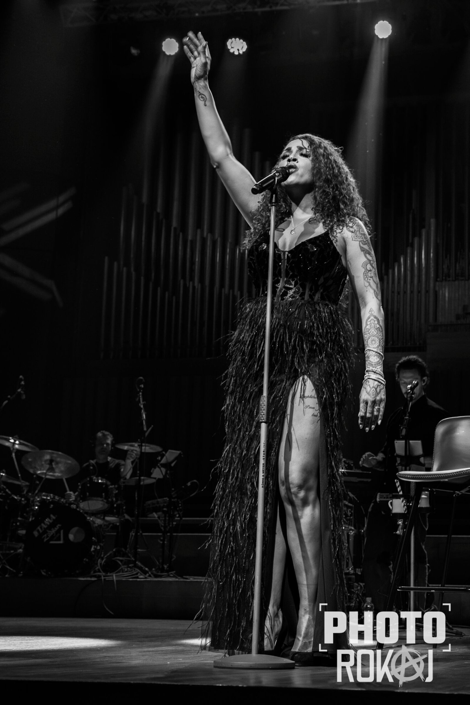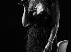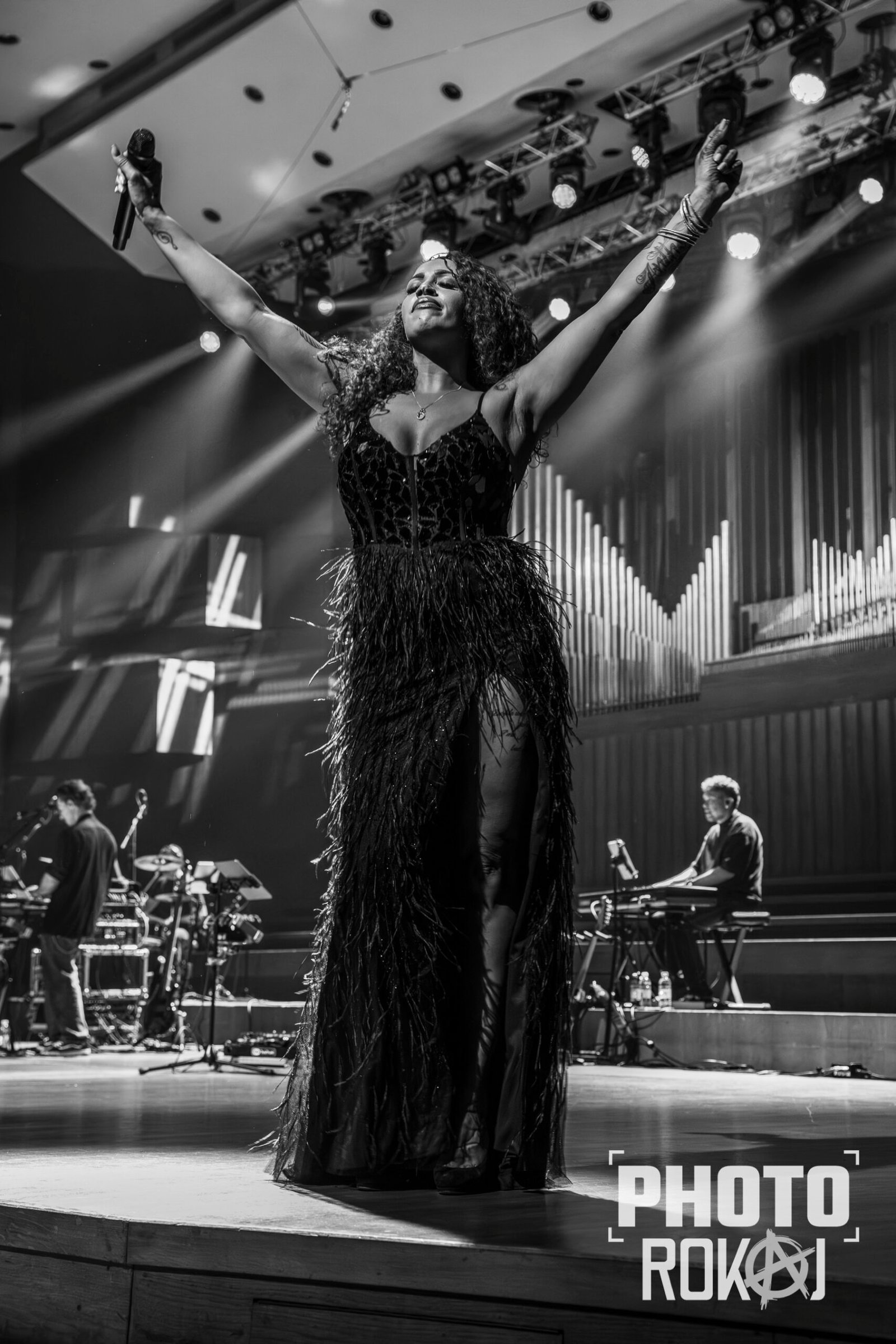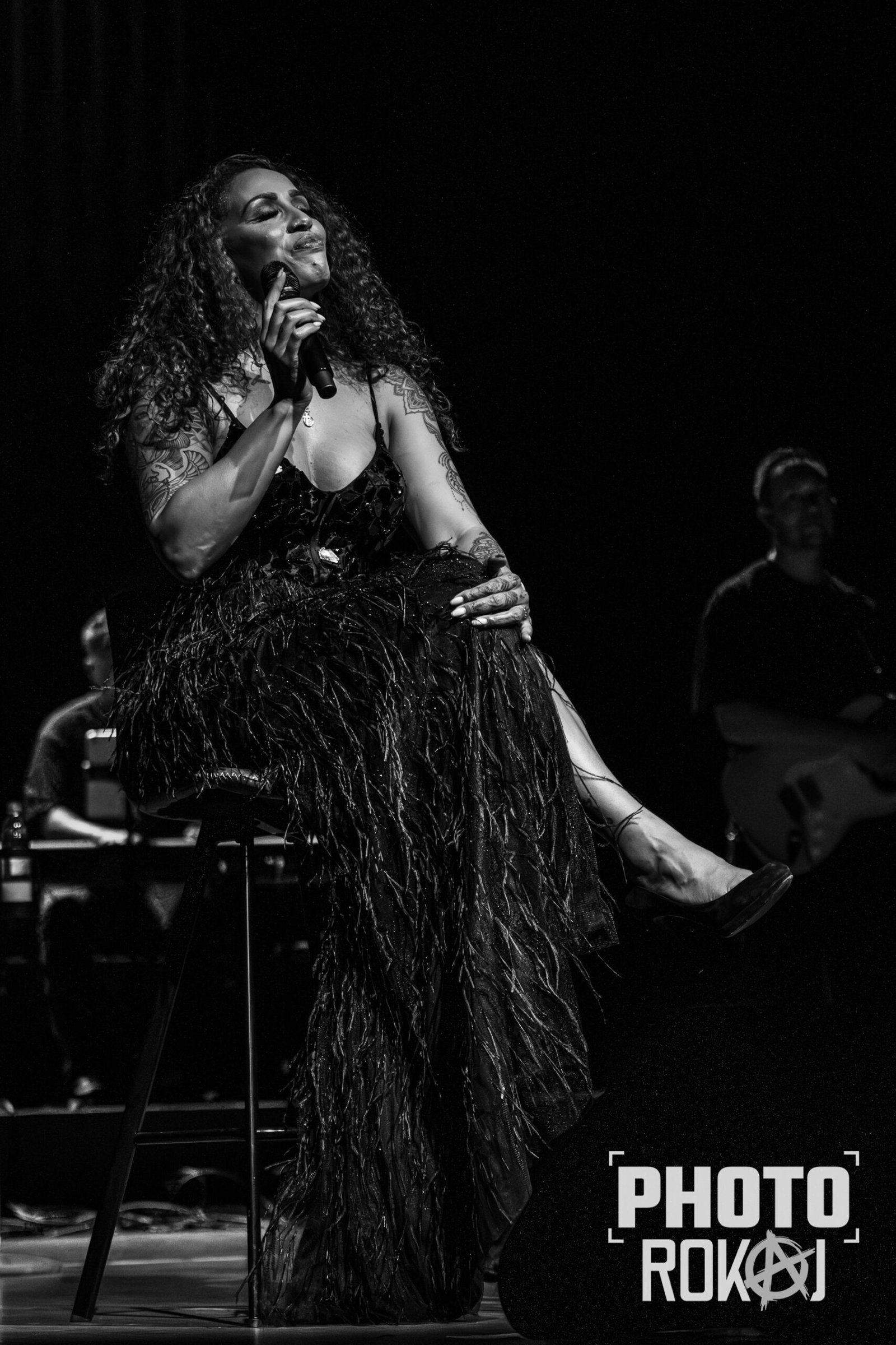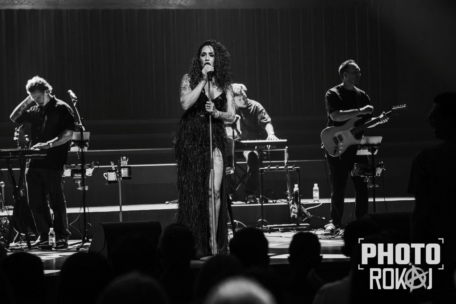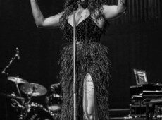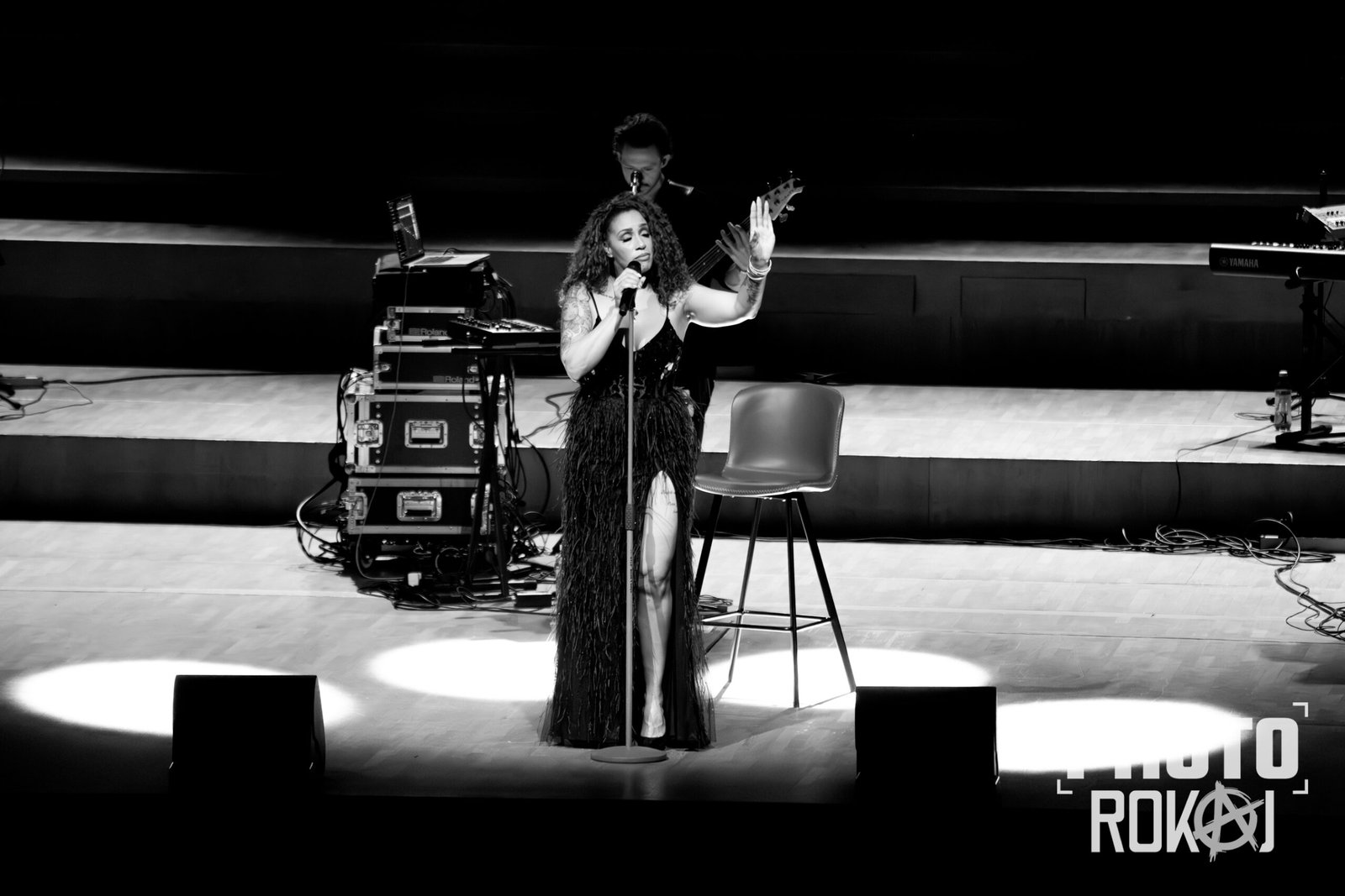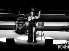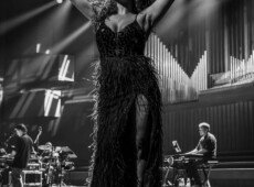 elegantnoj crnoj haljini, a na pozornici joj se pridružio bend, bez pratećih vokala, koji se,