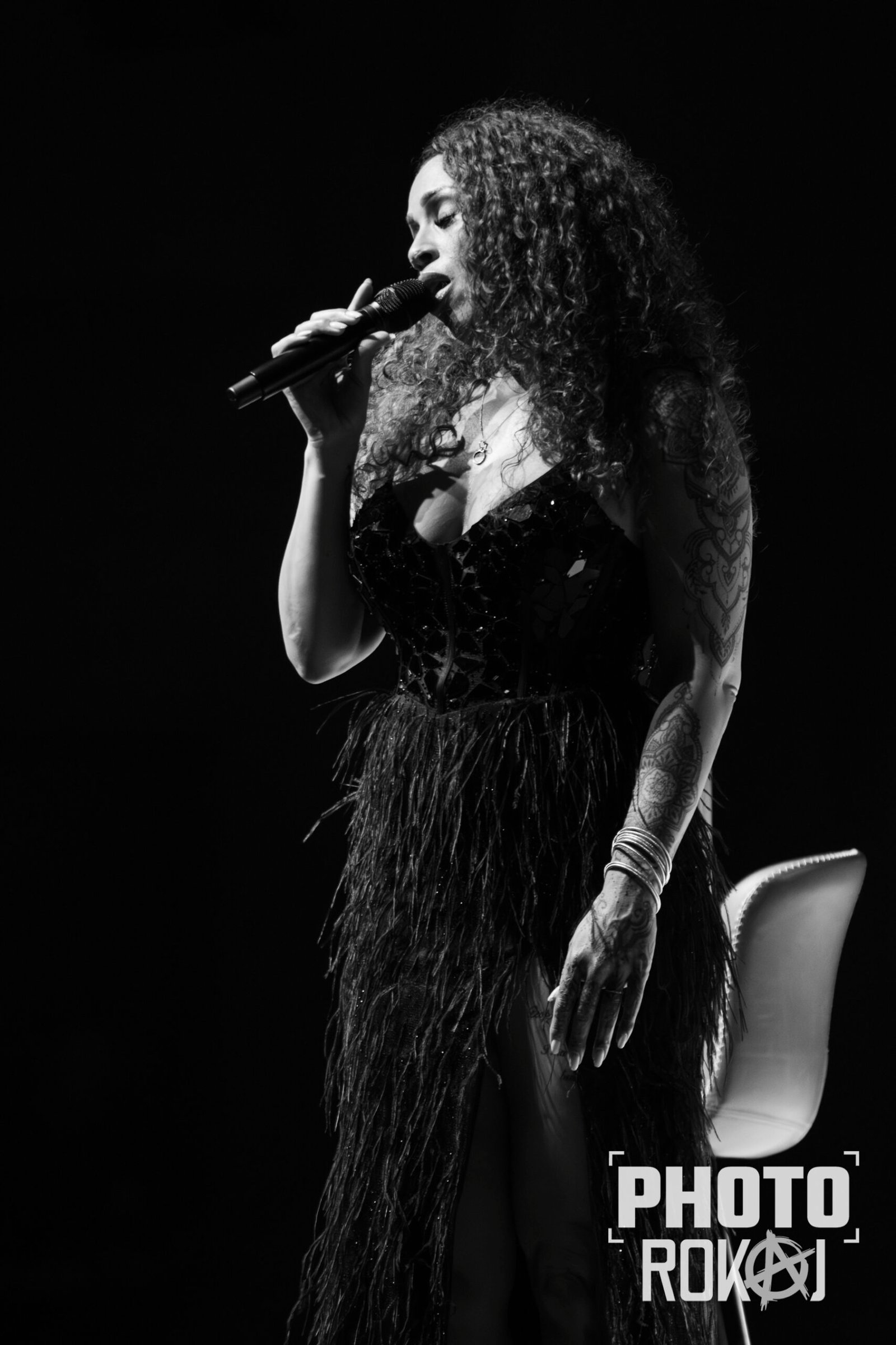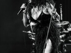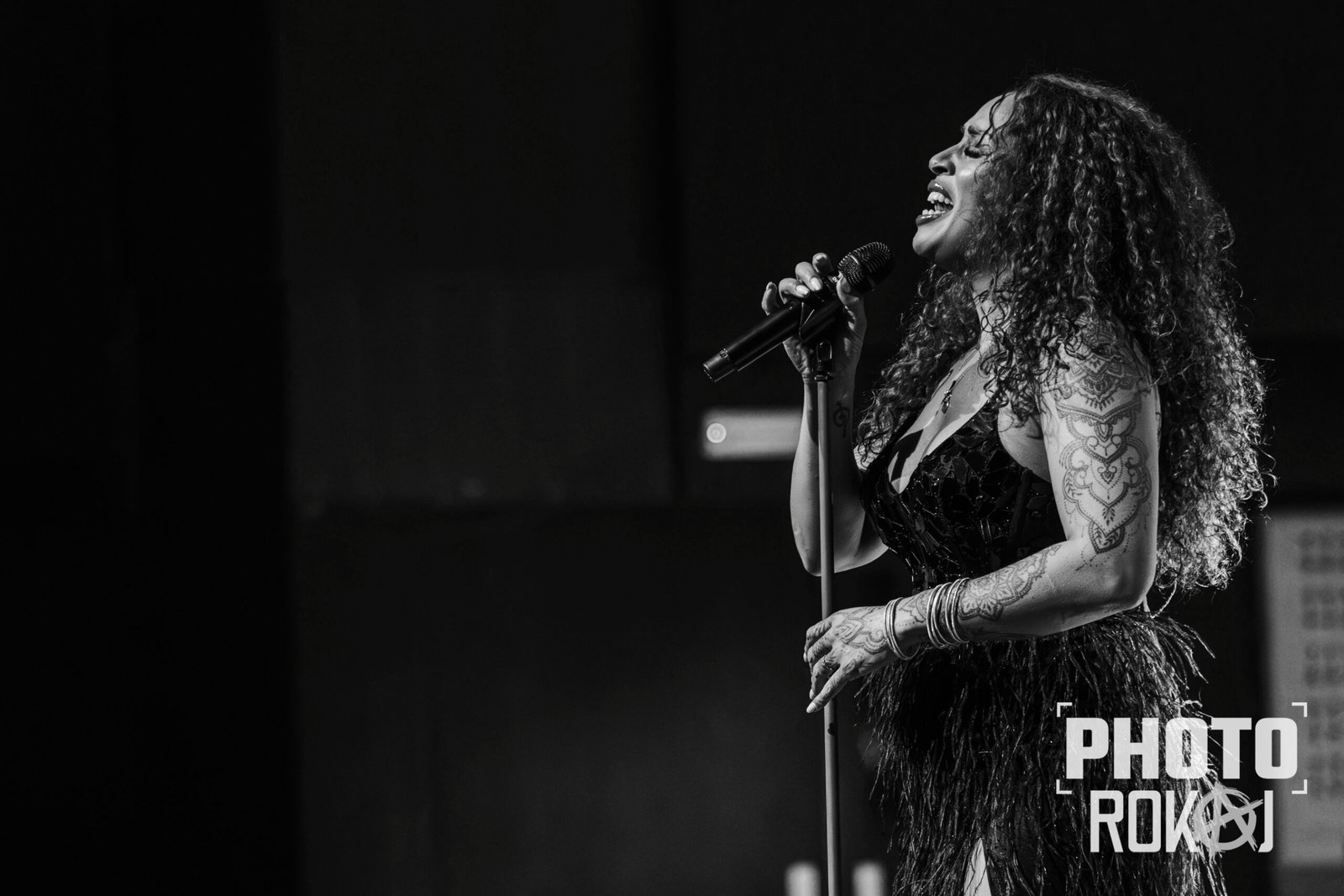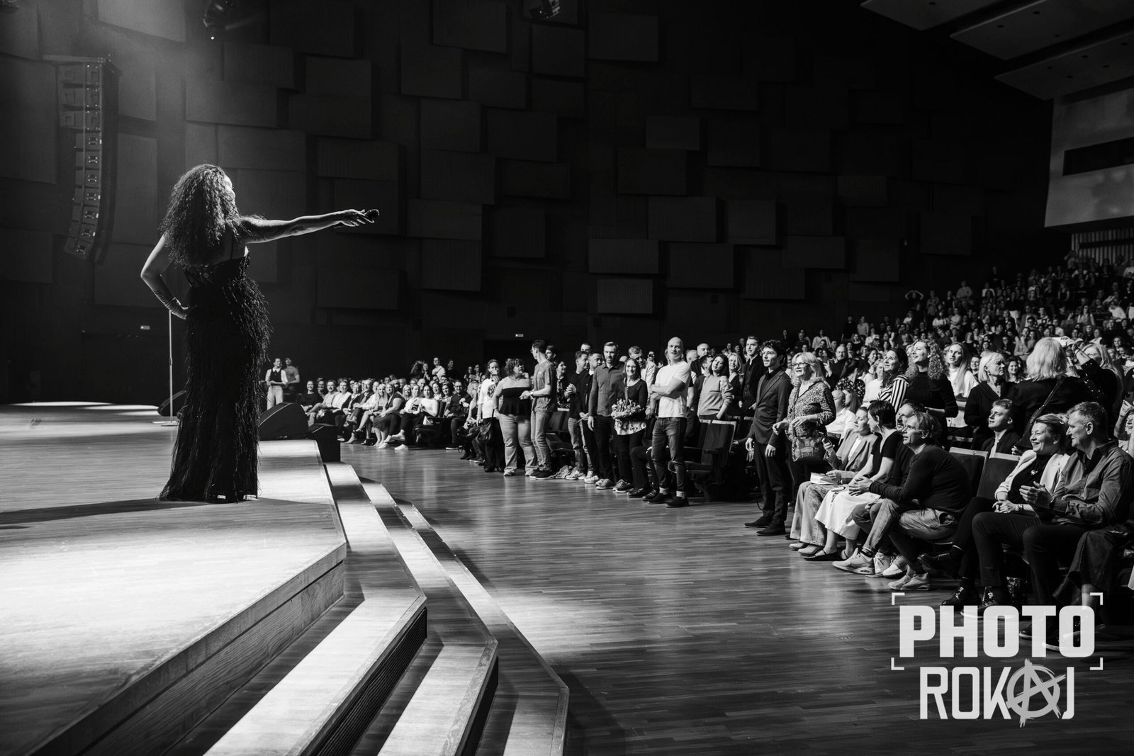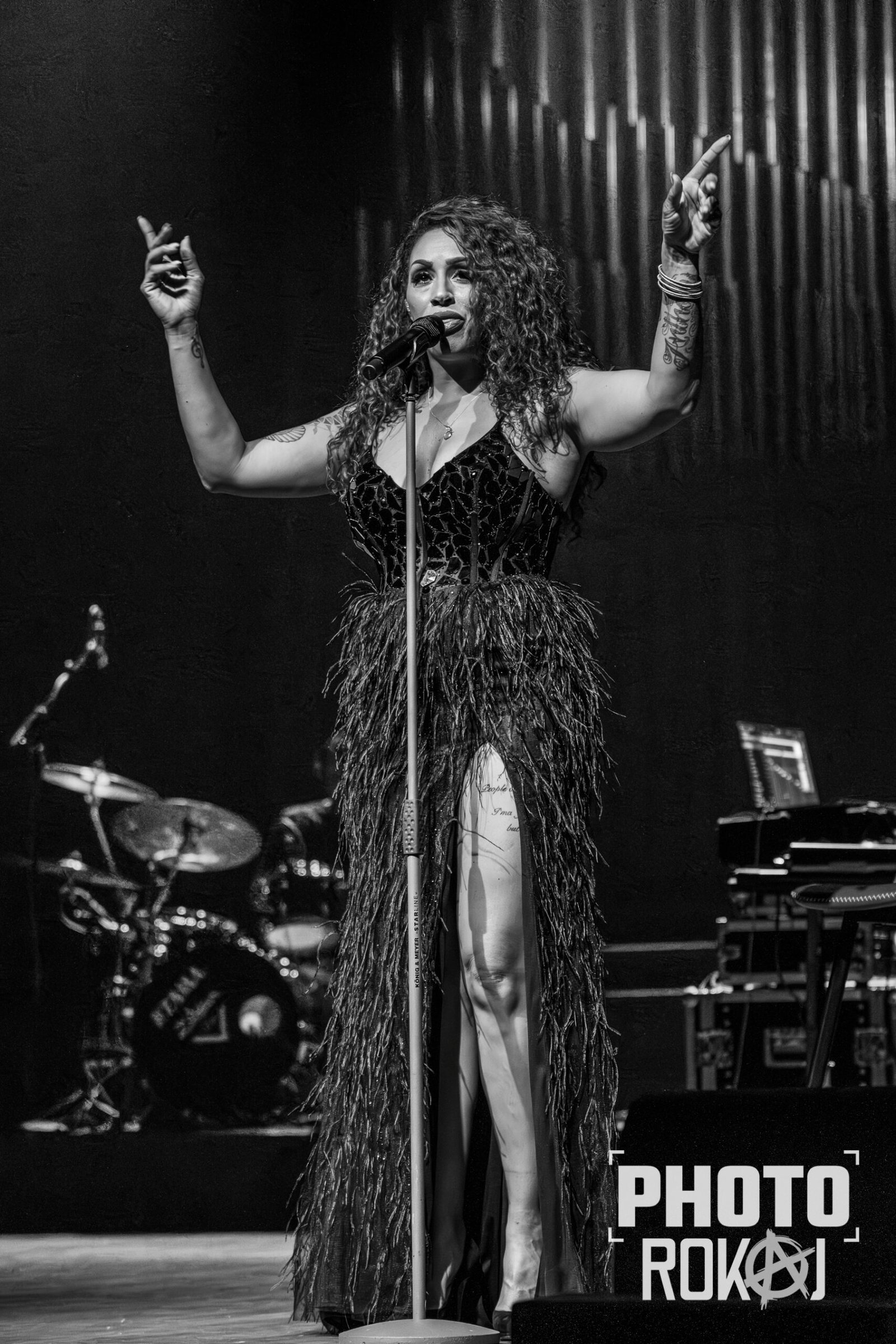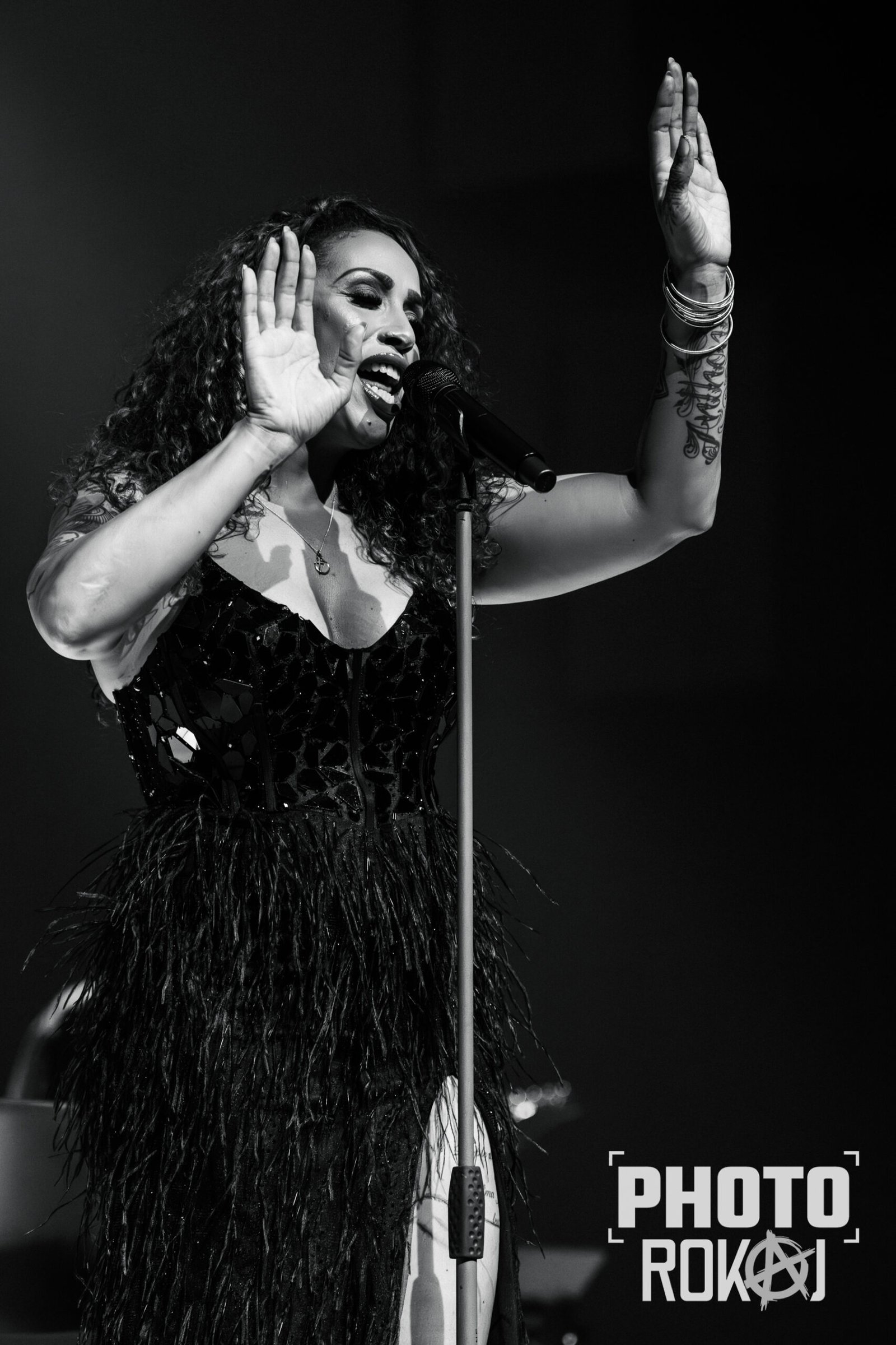 elegantnoj crnoj haljini, a na pozornici joj se pridružio bend, bez pratećih vokala, koji se,