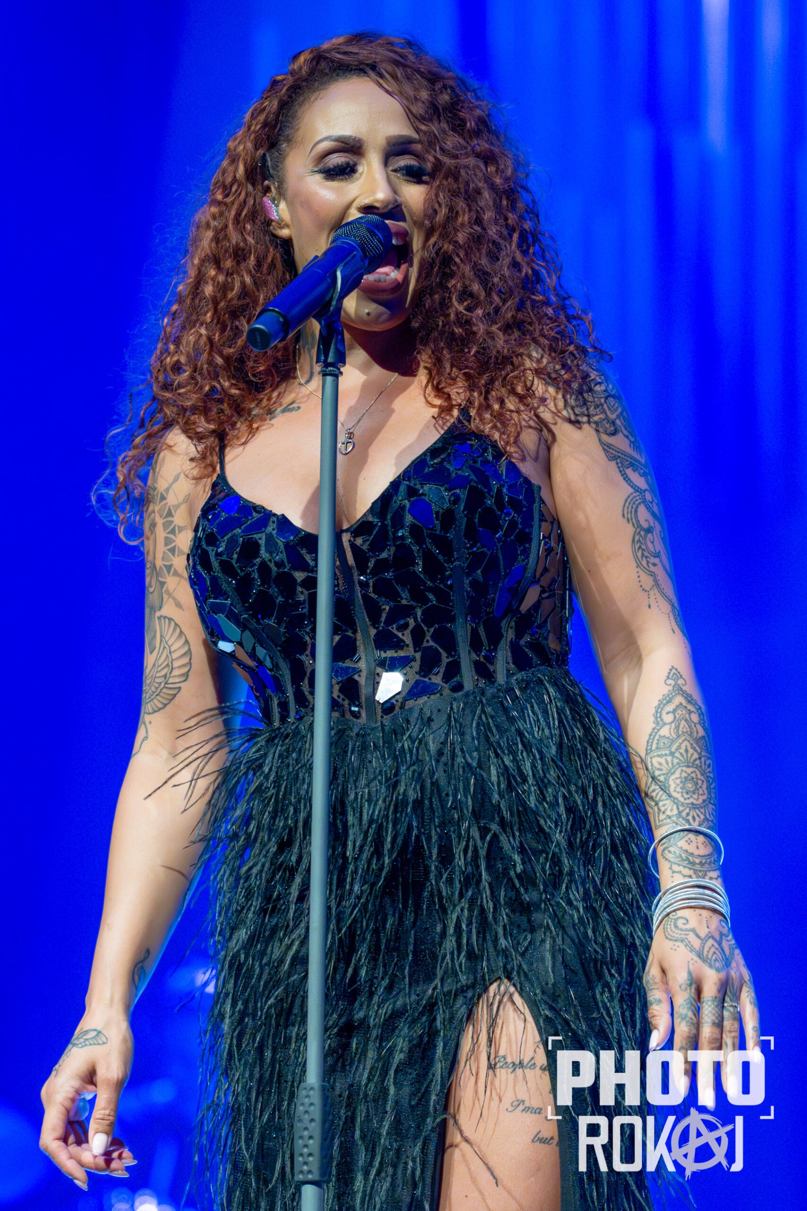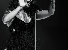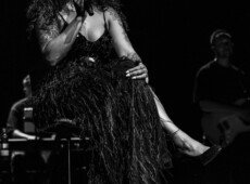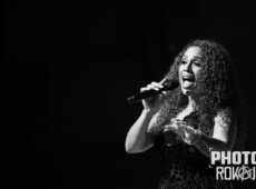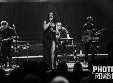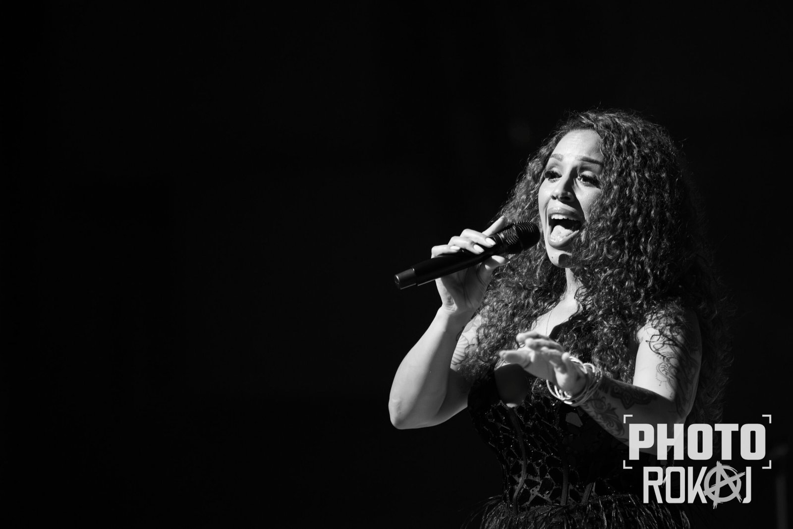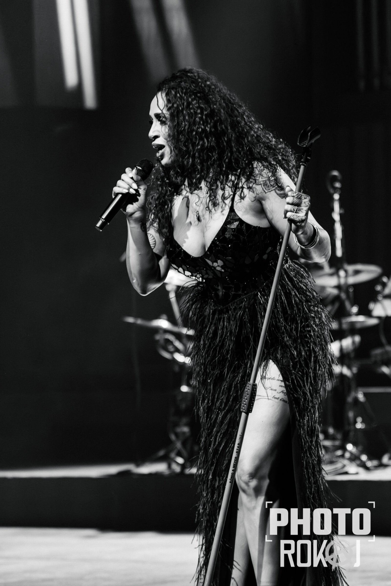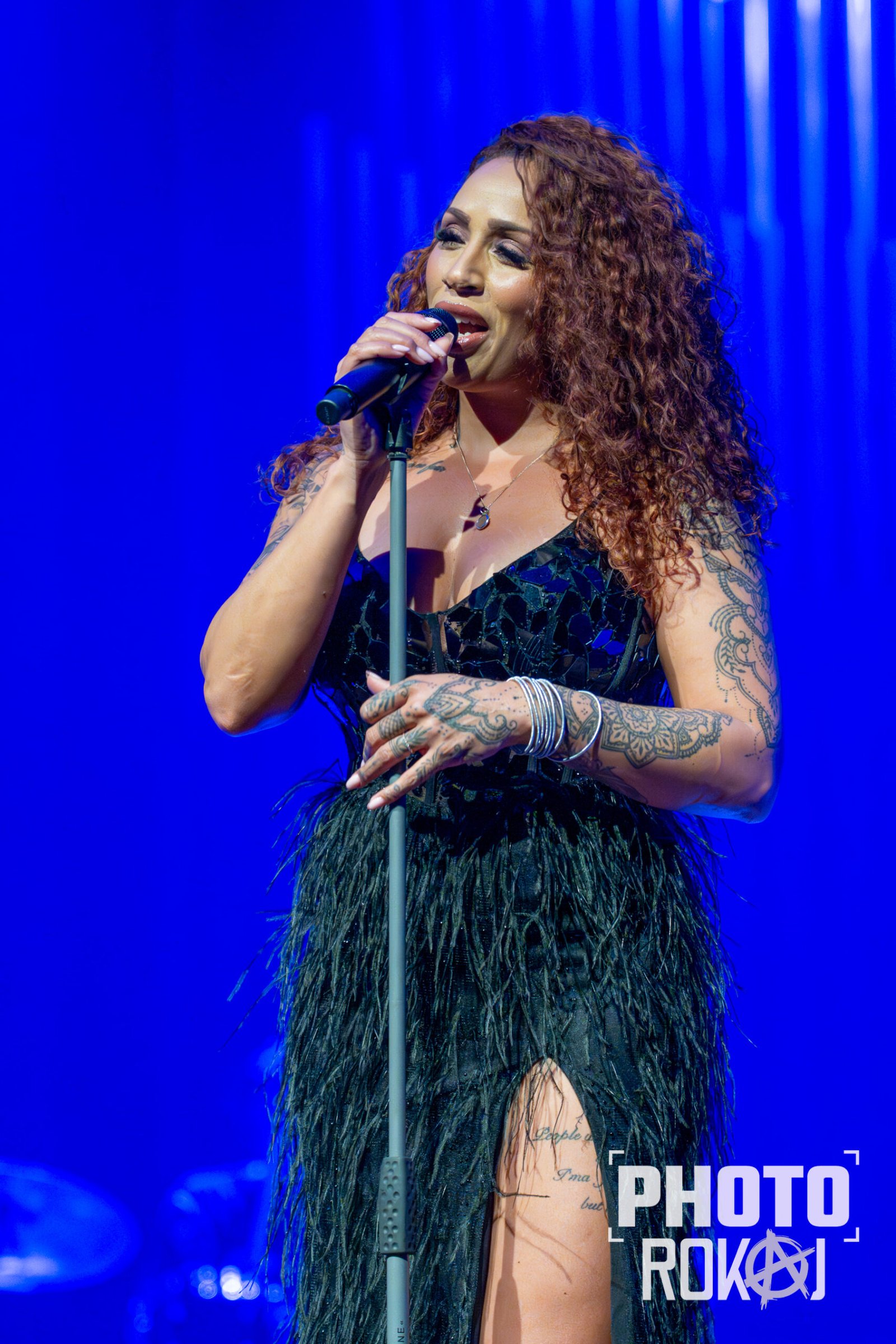 elegantnoj crnoj haljini, a na pozornici joj se pridružio bend, bez pratećih vokala, koji se,