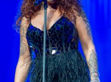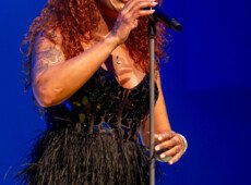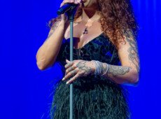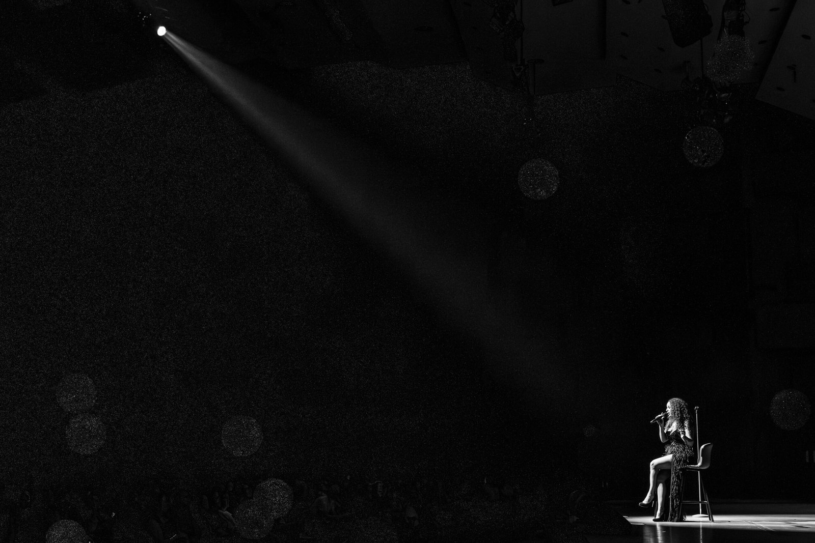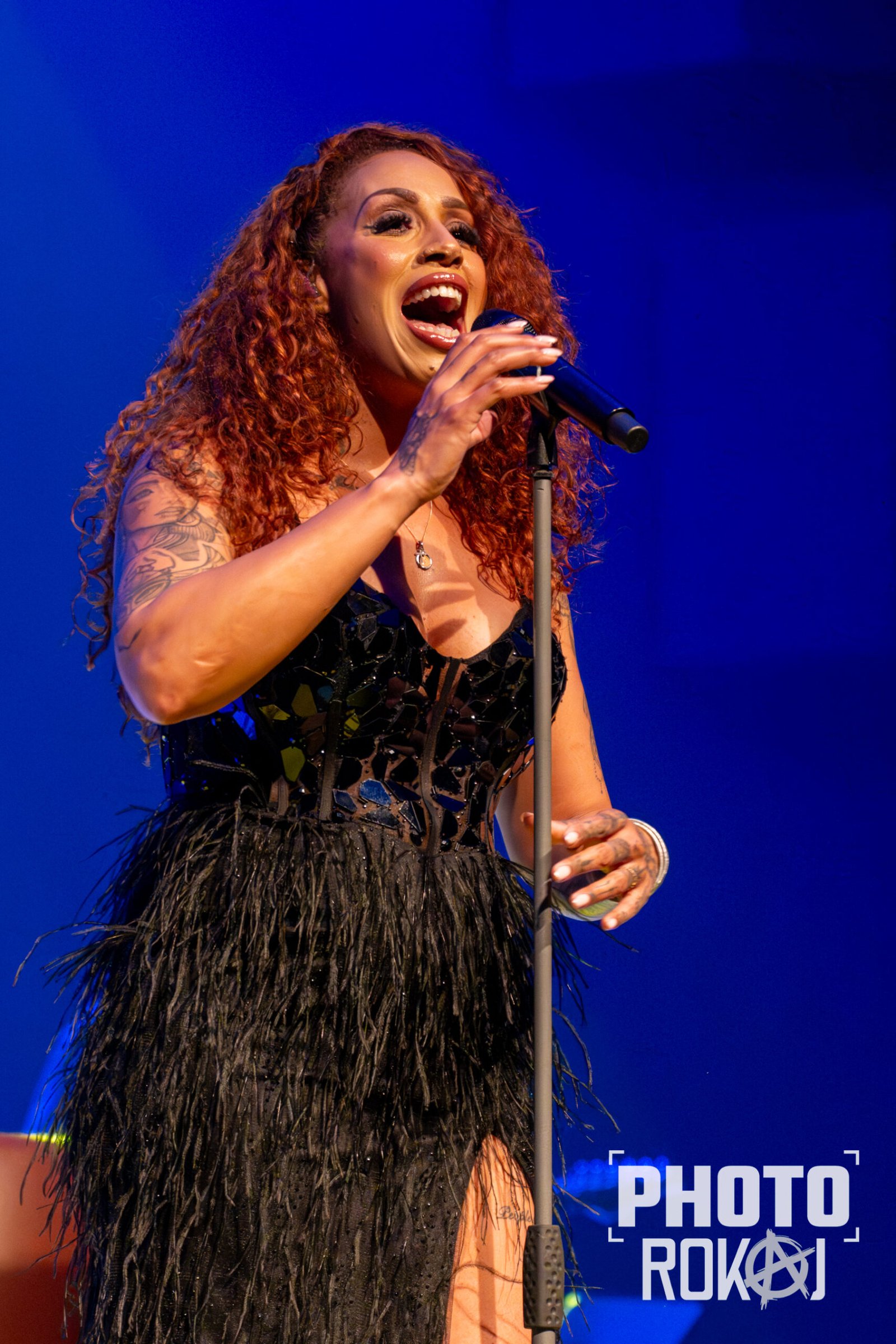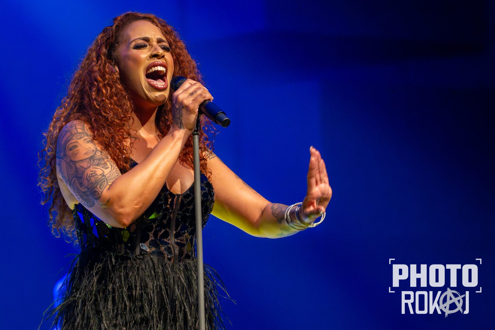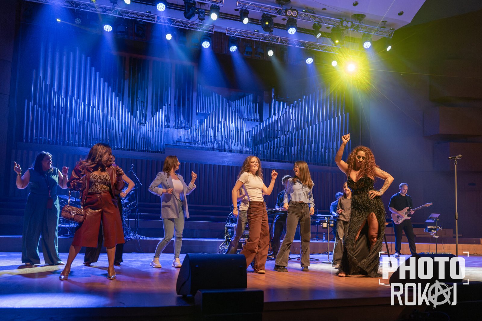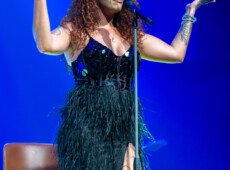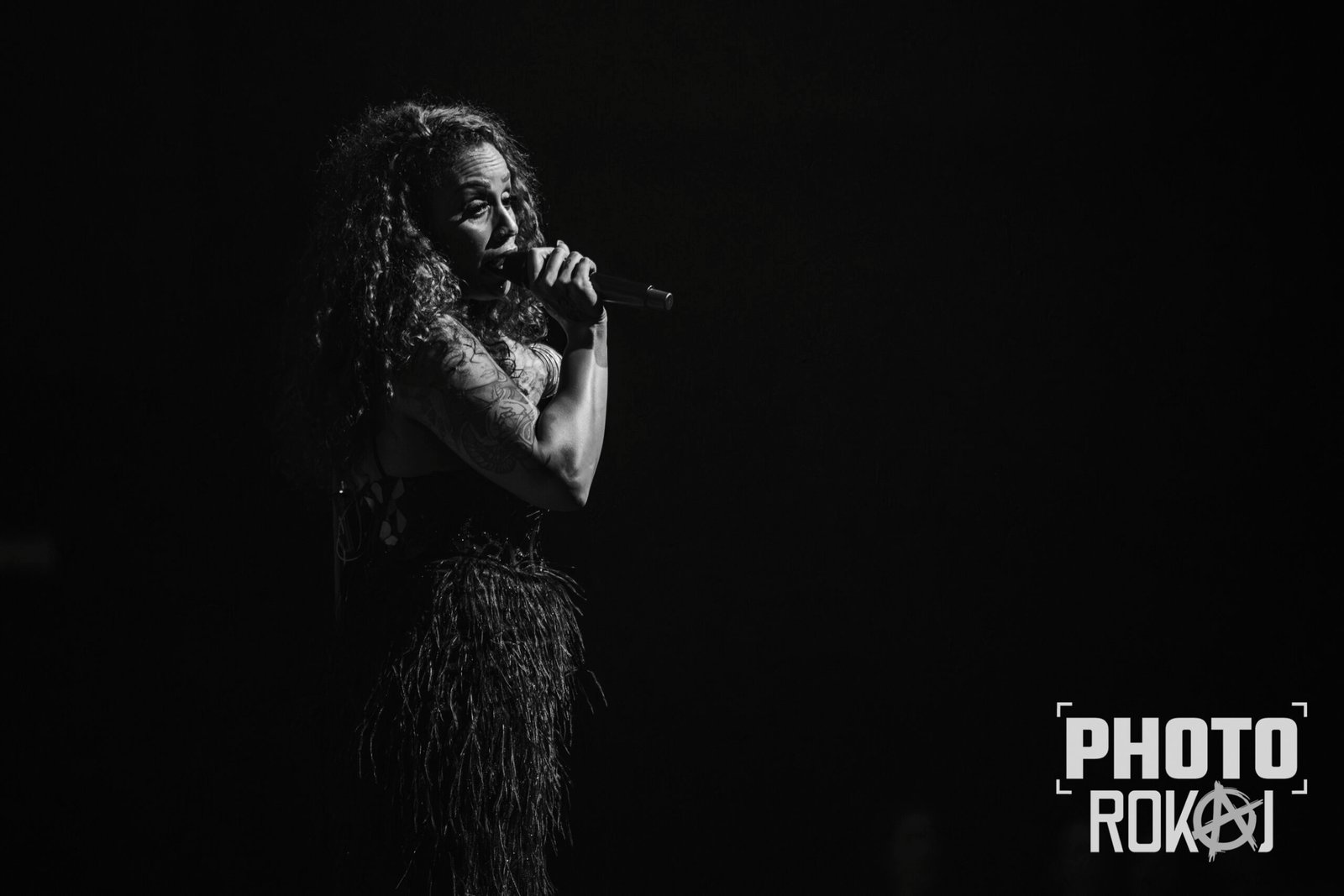elegantnoj crnoj haljini, a na pozornici joj se pridružio bend, bez pratećih vokala, koji se,