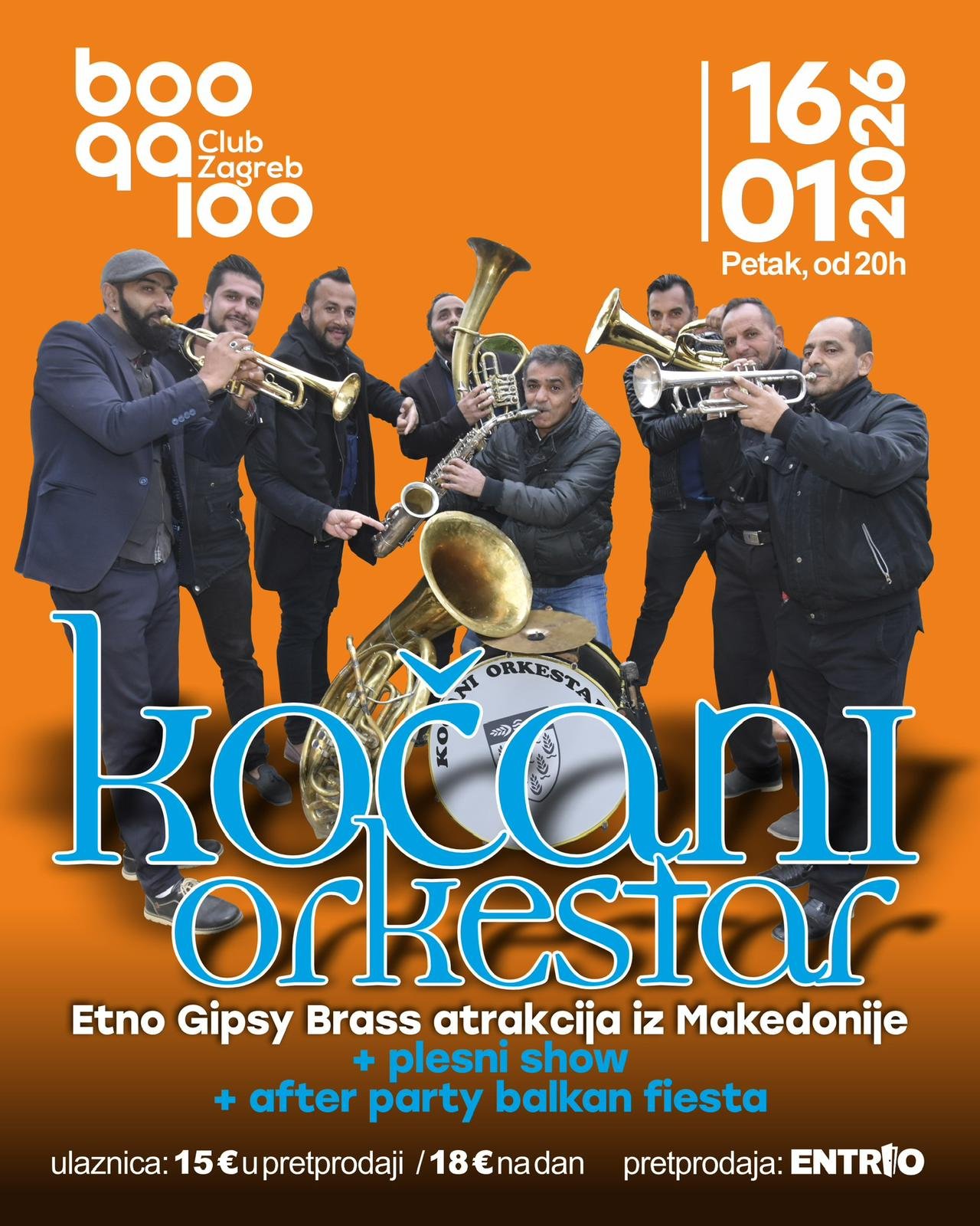 Makedonska etno gypsy brass atrakcija Kočani Orkestar ponovno će, već tradicionalno, nastupiti u zagrebačkom klubu Boogaloo, u petak, 16. siječnja 2026. godine. Uz vrhunske trubače i jedinstvenu energiju koja ih prati na svjetskim pozornicama, publiku očekuje i plesni show skupina Nipriye i Walde, kao i Balkan Fiesta afterparty.