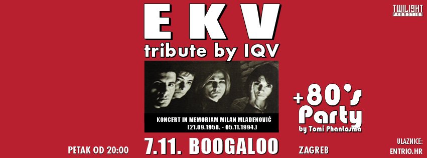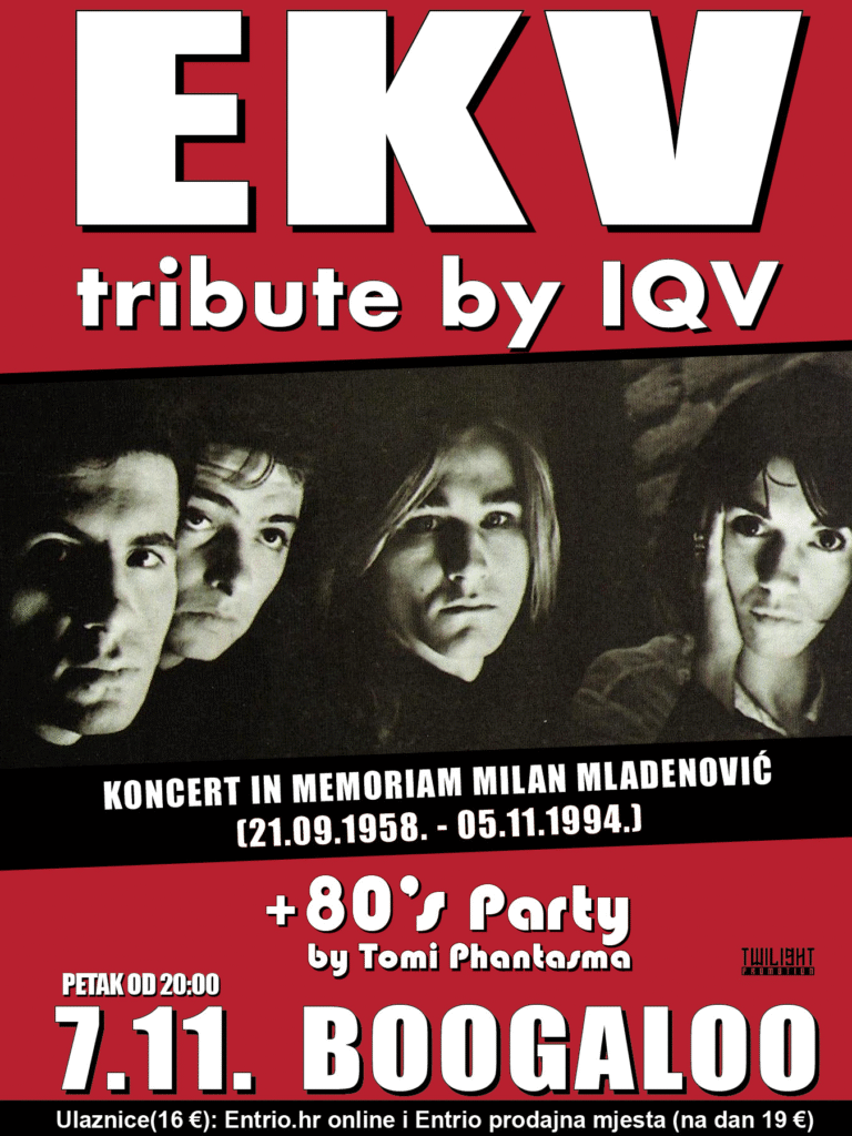 KONCERT EKV REAL TRIBUTE GRUPE IQV U SJEĆANJE NA MILANA MLADENOVIĆA POVODOM 31. GODIŠNJICE NJEGOVE SMRTI U PETAK 07.11.2025. U ZAGREBAČKOM KLUBU BOOGALOO + 80’S PARTY BY TOMI PHANTASMA