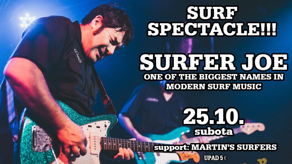 U subotu nas u Hard Placeu očekuje surf večer. Na binu nam se nakon godinu dana vraća legendarni talijanski Surfer Joe, izvođač koji je uključen u glazbenu surf scenu od sredine 90-ih. Izgradio je svoje ime širom svijeta kao glazbenik i organizator raznih događanja. Uz sjajnu svirku i red priče sigurni smo da ćete se dobro zabaviti, a support će mu pružiti domaće surf snage Martin’s surfers.