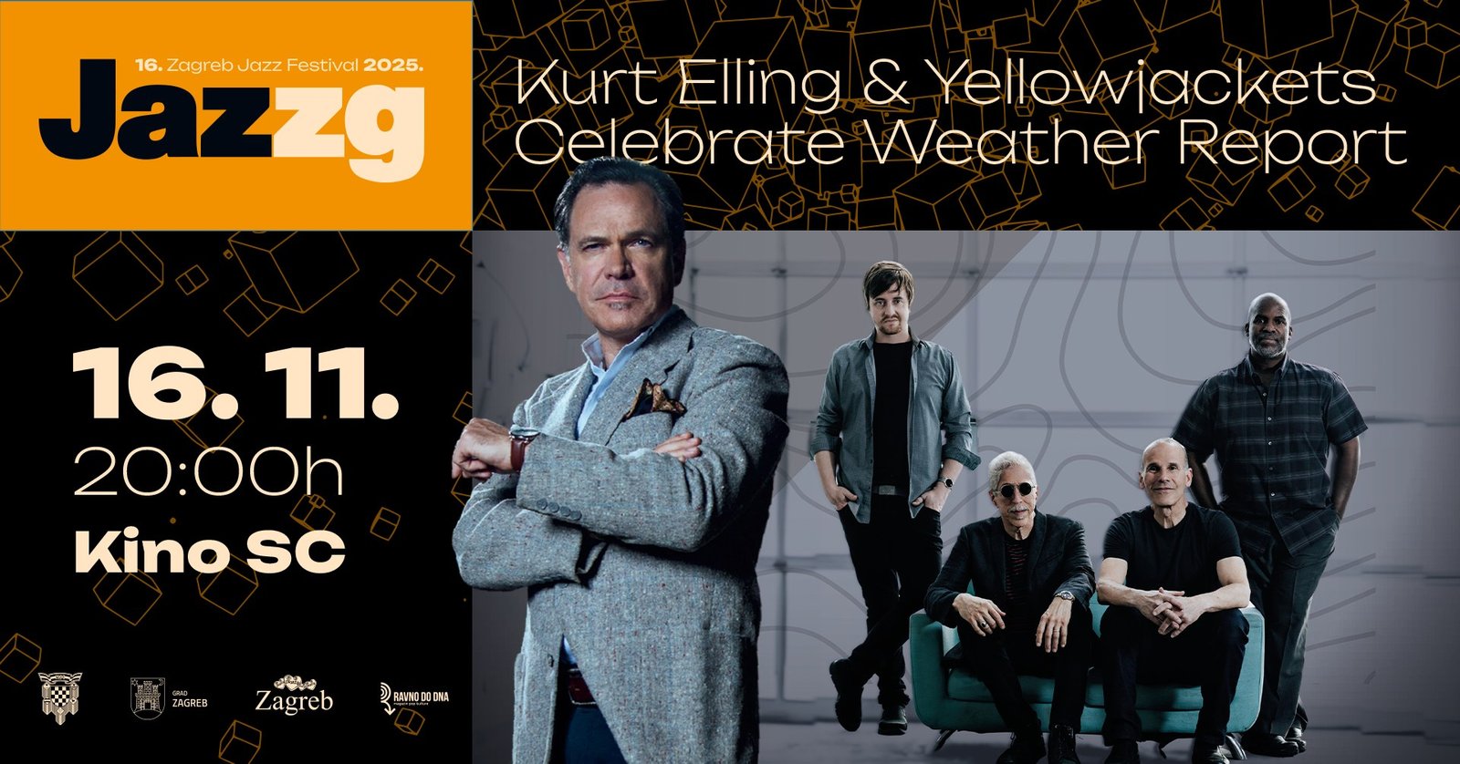 Kurt Elling & Yellowjackets Celebrate Weather Report je uzbudljiva suradnja dviju jazz velikana, koja spaja kultnu glazbu Weather Reporta sa smjelim reinterpretacijama i originalnom umjetnošću. Kurt Elling jedan je od najcjenjenijih pjevača današnjeg jazza, redovito zauzima prva mjesta na godišnjim ljestvicama najboljih jazz pjevača u uglednim časopisima DownBeat i JazzTimes. Poznat je po bogatom baritonu kojim pjeva u rasponu od četiri oktave, sjanoj tehnici te muzikalnosti, osjećaju za ritam, fraziranju i dinamici, kao i smislu za dramatiku što će do izražaja doći i u ovom posebnom projektu. Na zanimljiv će i dinamičan način prestaviti glazbu Weather Reporta koji su 1971. pokrenuli klavijaturist Joe Zawinul, saksofonist Wayne Shorter i basist Miroslav Vitous. Tijekom šesnaest godina ta je grupa kreirala povijest glazbe i snimila legendarne albume. Weather Report je svoj pristup zasnivao na elektrificiranom jazz zvuku koji su obilno začinjali elementima R&B-ja, funka i rocka, ali i utjecajima tradicijske glazbe raznih naroda. S Kurt Ellingom nastupaju: Russell Ferrante (klavijature), Bob Mintzer (saksofon), Dane Alderson (bas), William Kennedy (bubnjevi).