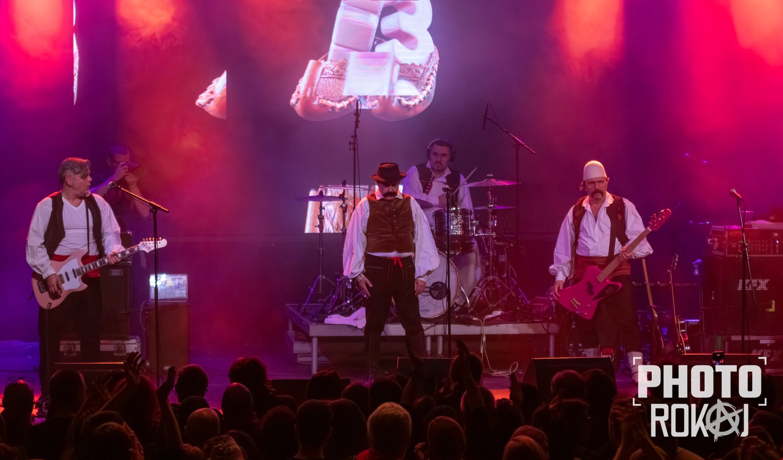 Krenuli su sa svirkom oko pola 10 i vrlo brzo je nastao pozitivan kaos i „narodno veselje“. Za početak su na pozornicu izašli plesači i plesačice koji su nas uveli u sve ono što je uslijedilo, spektakl. Plesali su na „Most na Drini Ćuprija“, a zatim je došao i bend te su krenuli sa pjesmom „Beograde“ i kada je krenula „Izađi mala“ ekipa se totalno opustila i stopila s bendom. Znate ono, kad se kaže, disali su kao jedno- e baš to se desilo i trajalo je do kraja koncerta, koji btw. nije završio po planu benda.   Uslijedila je „Mala Soba“ i „Mamne Baneta“ te „Odvest ću te na vjenčanje“ koju je pjevala cijela Tvornica. A onda, naravno ništa bez Letovskog iznenađenja – Intermezzo – Ukočenje. U doslovnom smislu, bend se ukočio i tako su stajali na pozornici par minuta. Neki su bili zbunjeni, ja sam imala set listu pa mi je bilo jasno, no bilo je zabavno gledat ekipu koja se zbunjeno pogledava. Letovci su samo krenuli sa „Jahorinom“ žestoko i jako, a onda je uslijedila „Dijete u Vremenu“ koja je oborila s nogu i ekipu, ali i bend. Tvornicom se orilo „Nisi me voljela u ono vrijeme…“. Uslijedile su još dvije pjesme, a onda je krenuo poziv „Riječke Pičke“. Mislim da već dugo nisam čula toliko puta da je publika sama vikala iječke Pičke, a onda im se pridružio i Prlja pa je bila kombinacija Riječke – Pičke – Piče – Riječke i krenula je stvar, i što reći osim kaos i eksplozija energije. Odsvirali su još „Ero s onoga svijeta“ i „Kurcem u Čelo““ i onda au otišli sa pozornice. Nakon takve eksplozije, publika je bila nabrijana i htjela je još. Dobili su iznenađenje koji, mislim da je malo tko očekivao, ali to je Let3 i kod njih i s njima uvijek očekujte neočekivano. Na pozornicu su došli tamburaši koji su odsvirali i otpjevali medley „Izgubljeni – Tazi Tazi“. Ne, nije bilo perja ovaj puta, ali je bilo prezabavno od početka, a sve se samo nabrijavalo na još i još. Tamburašima se pridružio Mrle te otpjevao „Ženu Varam“ i „Želatina“.