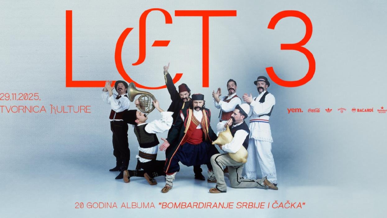 Dvadeset godina nakon što su “Bombardiranjem Srbije i Čačka” razdrmali scenu i zauvijek promijenili pojam koncertnog ludila, LET 3 se vraća tamo gdje sve ima smisla – u Tvornicu kulture.
