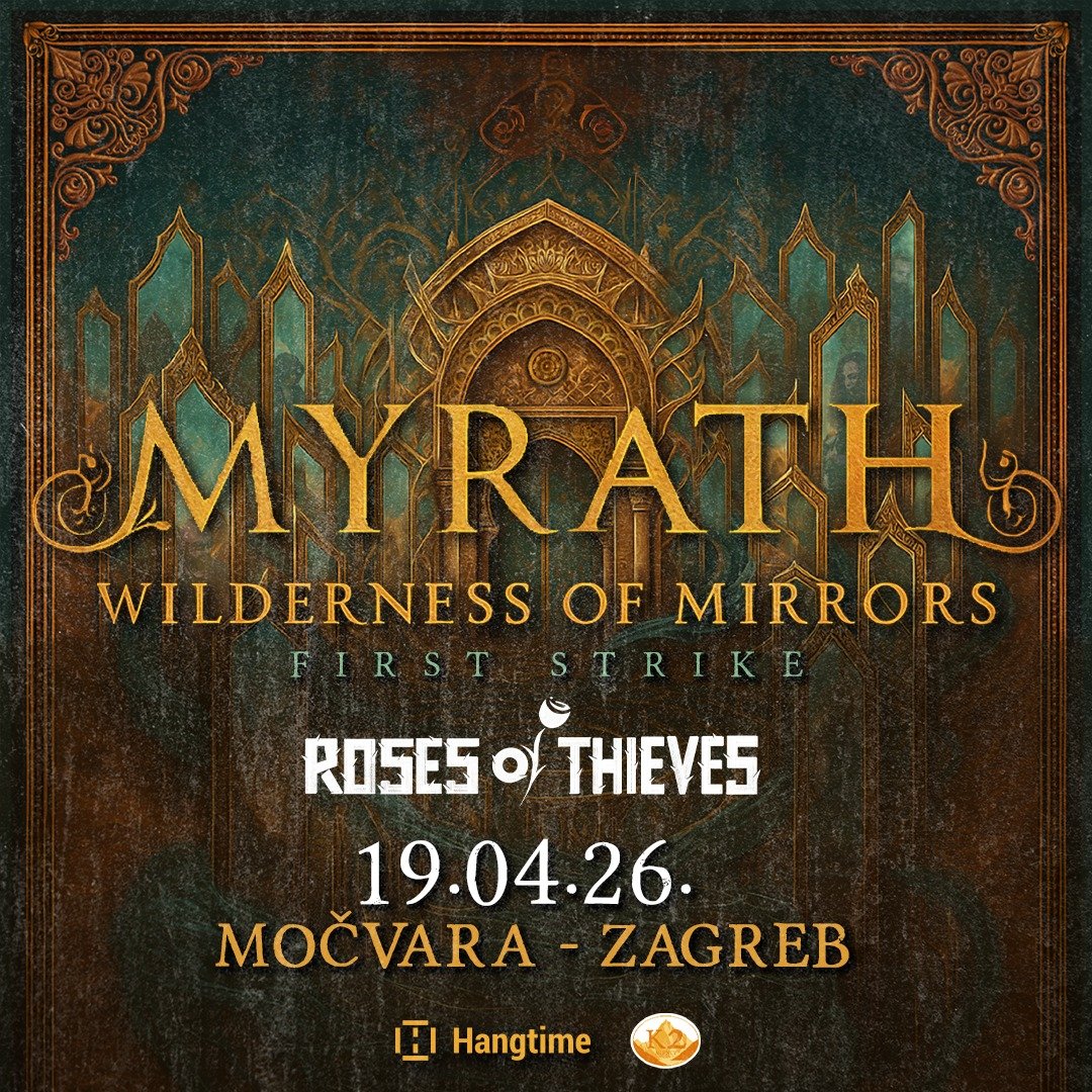 Tuniško-francuski progresivni metal bend Myrath premijerno stiže u Hrvatsku u sklopu europske turneje na kojoj promoviraju novi, već sada iznimno hvaljeni album “Wilderness of Mirrors”. Zagrebačka Močvara ugostit će ih u nedjelju, 19. travnja 2026., a publiku očekuje koncert koji spaja orijentalne melodije, snažan moderni metal i izraženu teatralnost po kojoj je bend globalno prepoznatljiv. Na pozornici će im se pridružiti i sjajni mađarski metalci Roses of Thieves. Early bird ulaznice rasprodane su u svega nekoliko dana, a ulaznice u pretprodaji dostupne su po cijeni od 32 eura putem Hangtime weba i u Dirty Old Shopu (Tratinska 34). Ako ih ostane, na dan koncerta cijena će iznositi 35 eura ako ih ostane.