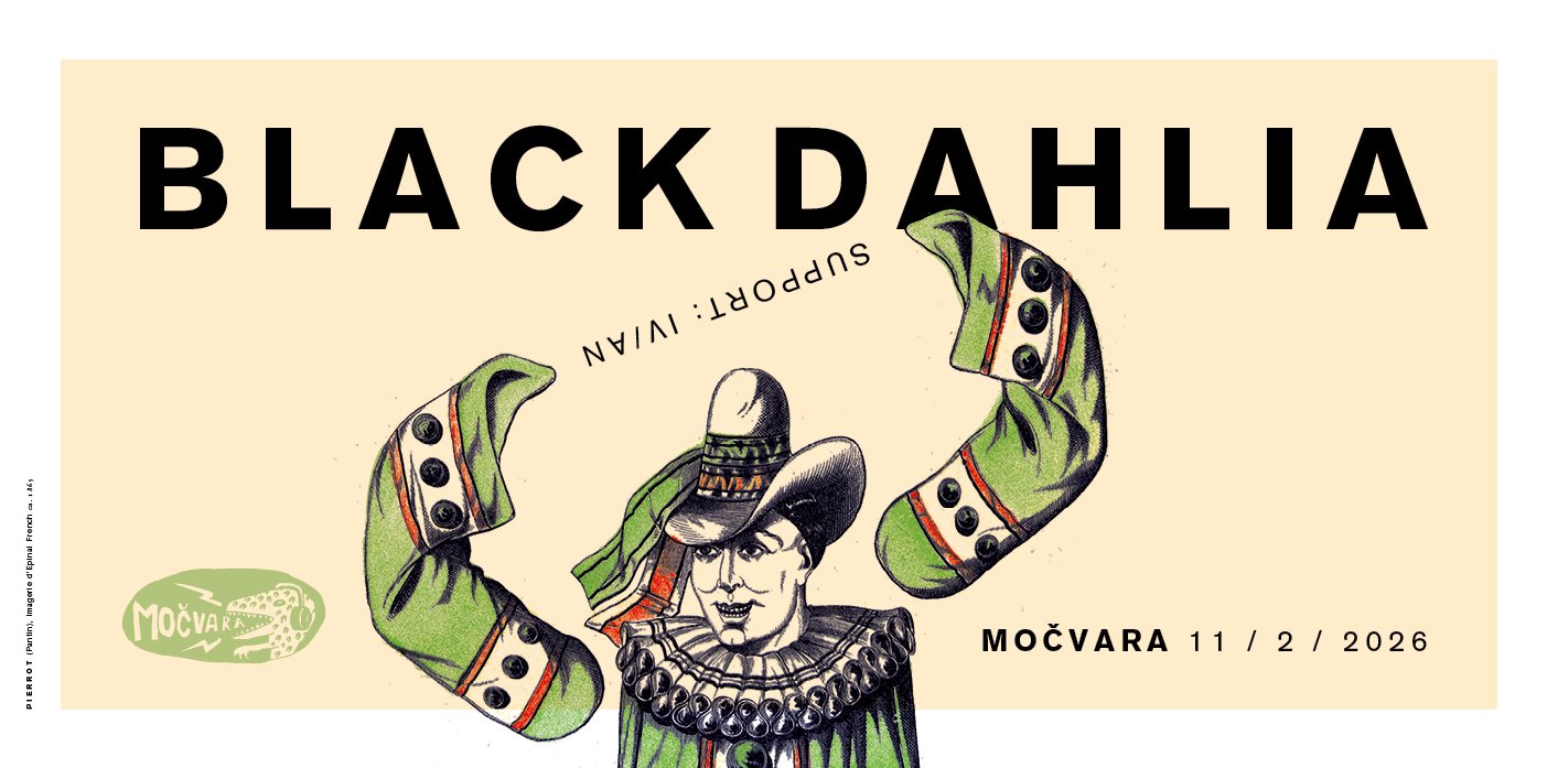 Black Dahlia prati blistavo svjetlo i poziva nas u art pop svijet albuma “The Imposter“! Eksperimentalna glazbenica i performerica, Black Dahlia briše granice između kazališta, zvuka i nadrealnog spektakla. Njezine kreacije postoje u snolikim prostorima gdje se sudaraju maske, likovi i svjetovi – ekstravagantni, avangardni izrazi koji crpe podjednako iz performansa, pantomime i nadrealizma kao i iz same glazbe. Bilo da nastanjuje čudne persone na pozornici ili gradi prostrane zvučne krajolike, Black Dahlia dočarava svemire koji se osjećaju istovremeno strano i intimno ljudski, pozivajući svoju publiku da zakorači u nepoznato.