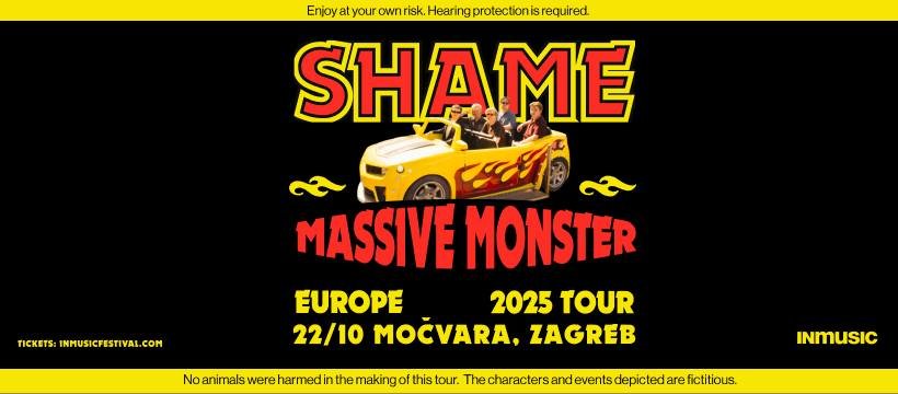 Jedan od najuzbudljivijih britanskih post-punk bendova današnjice vraća se na zagrebačku pozornicu! Nakon što su 2023. godine rasplamsali Močvaru i ostavili publiku u transu, shame ponovo dolaze u goste – još glasniji, siroviji i nabrijaniji – u sklopu europske turneje Massive Monster.