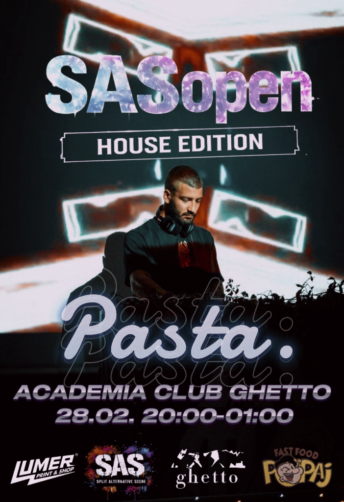 SASopen postao je bogatiji za HOUSE EDITION, koji će se održavati paralelno s rock koncertom, a na prvom izdanju će nas DJ Pasta počastiti petosatnim house setom!