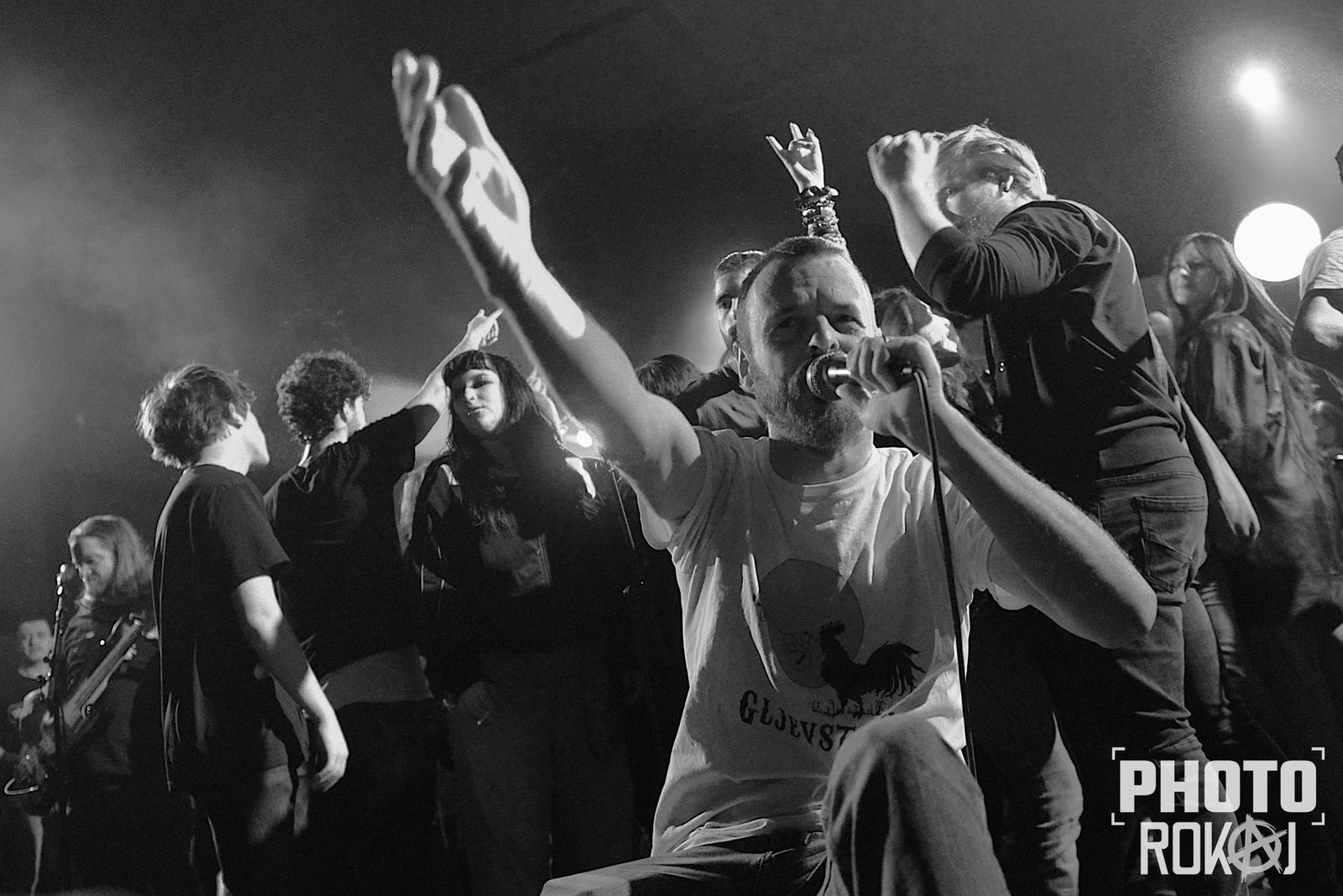 U jednom trenutku na pozornicu dolazi lik koji recitira – pjesnik Ivo, predstavlja nam obnovljenu verziju Dionezijskih svečanosti. Malo razbije atmosferu, ali dobro – i to je dio kaosa koji volimo. Gitarist se voli kretat po pozornici i skroz bi mu dobro došla jedna pista da izrazi svu svoju kreativnost. Svirao je i dok ga je publika nosila na rukama.