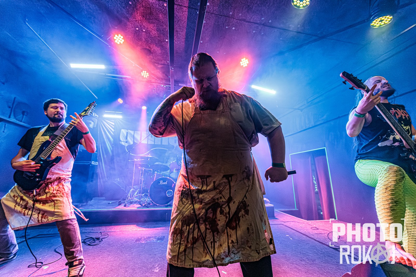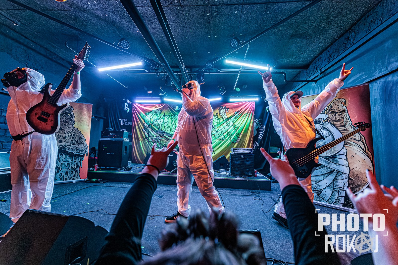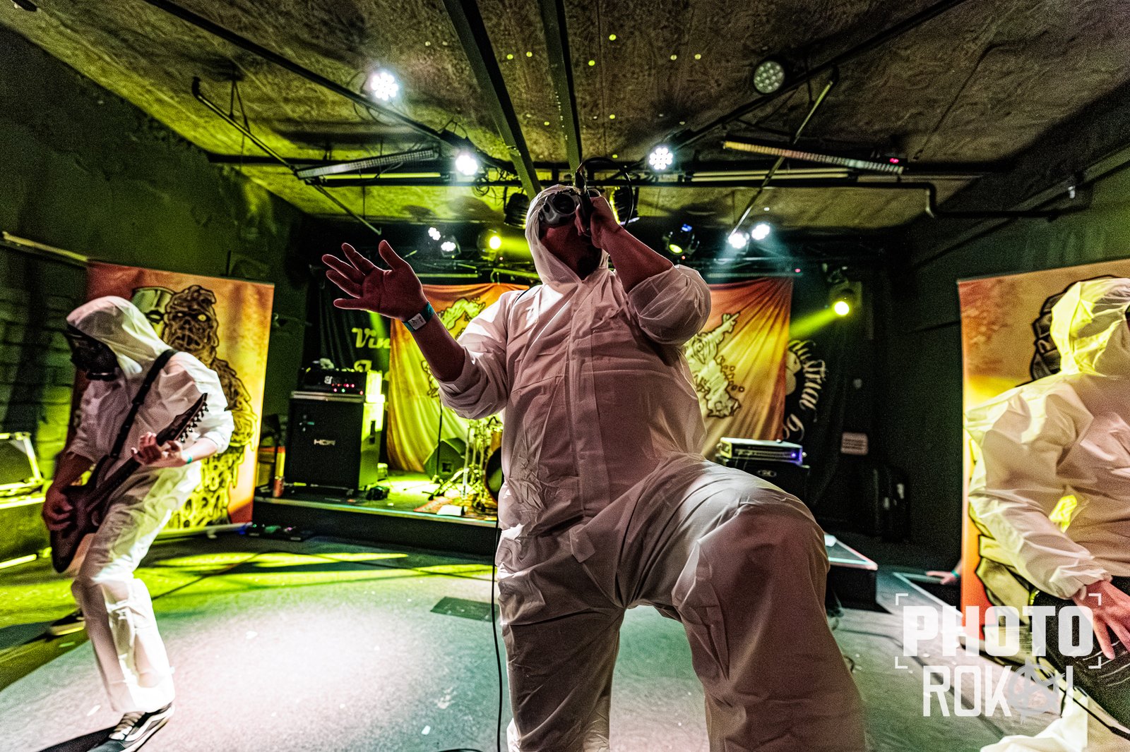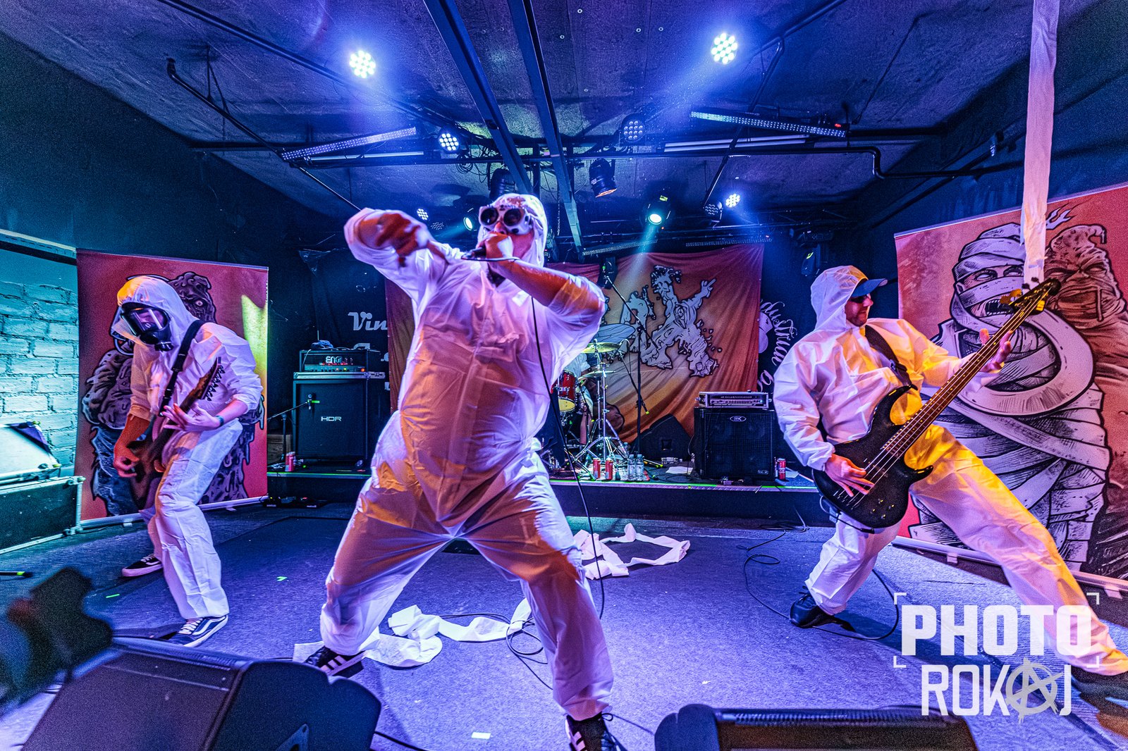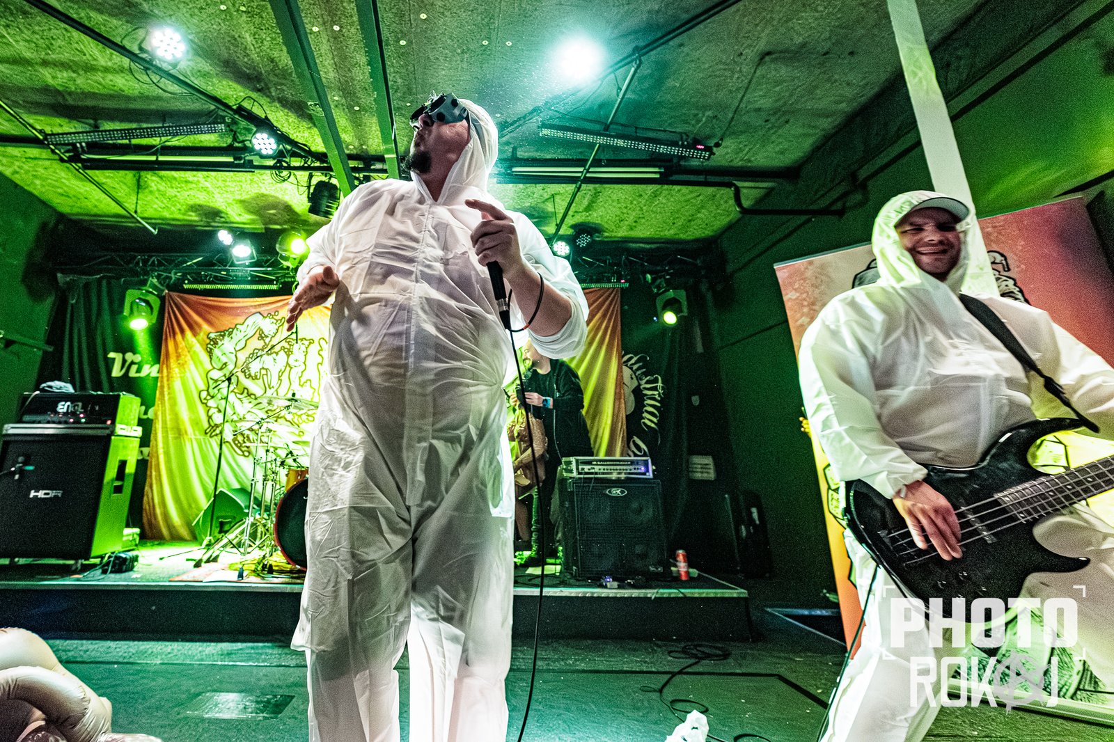 Ove je srijede Vintage Industrial Bar bio poprište žestokog goregrinda. Čak četiri benda – austrijski VxPxOxAxAxWxAxMxC, talijanski Guineapig te dva češka – Spasm i Gutalax – priredili su više od četiri sata vrhunske svirke. Naravno, ako se ubrajate u one koji vole tu vrstu glazbe, jer oni koji su slučajno te večeri završili u Vintageu sigurno su bili jaaako iznenađeni doživljenim. Koncert je započeo bend  VxPxOxAxAxWxAxMxC i tu odmah za one koji ih ne poznaju treba naglasiti da mi nije ruka poletjela po tastaturi nego se radi o akronimu čije razrješenje možete na internetu potražiti sami. Članovi grupe su Wolfgang Ott (bas) Werner Kniesek (gitara) Franz Stockreiter (vokal), a zanimljivo je da to nisu njihova prava imena nego alijasi notornih austrijskih serijskih ubojica – u potpunosti u skladu s imageom benda koji uz goregrind svira i brutal death metal. Dečki su od početka krenuli punim goregrind gasom,  prepoznatljivo po dubokim grgljajućim vokalima, uz izvrsne gitare i bubnjeve, što je bilo dovoljno da dovede publiku na koncertnu temperaturu.
